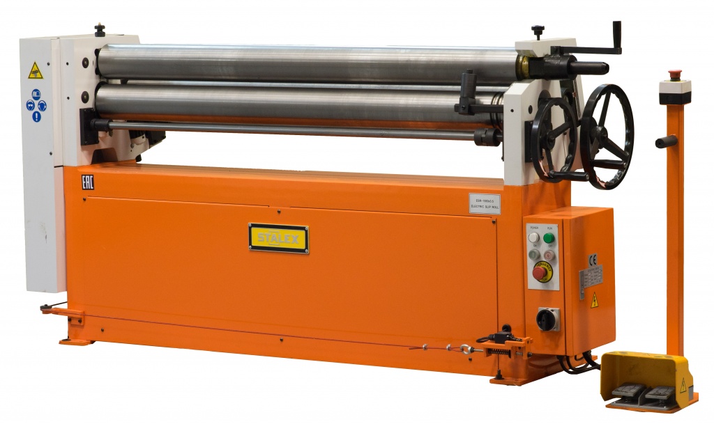 Вальцовочный станок предназначен для предания листу цилиндрической формы различного радиуса, данное оборудование широко применяется для изготовления комплектующих вентиляции, водосточного оборудования, в случаях производства цилиндрических и конических изделий, правке плоских заготовок, подгибке кромок. Выносная педаль дублируется пультом управления на станине станка. Цепная передача передаёт вращение с электродвигателя на валы. Верхний вал откидной, для легкого снятия готовых изделий. Откидной вал оснащен замком для предотвращения его самопроизвольного раскрытия в процессе работы.